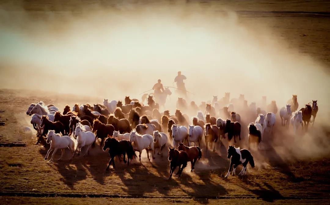 初秋坝上,尘土飞扬,万马奔腾