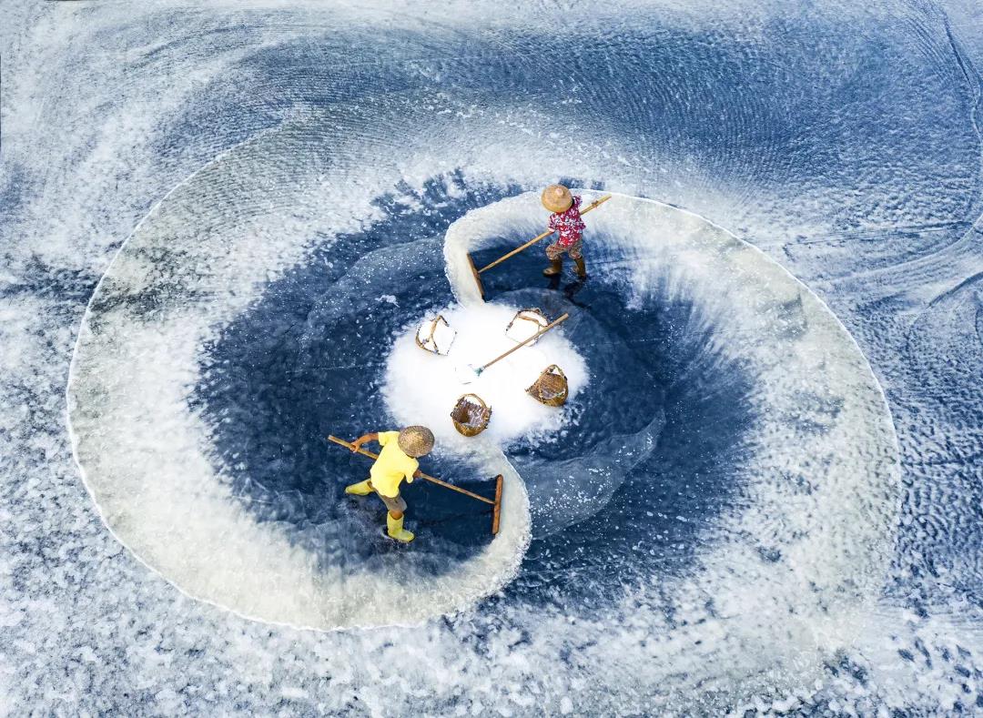 盐农们劳作的场景