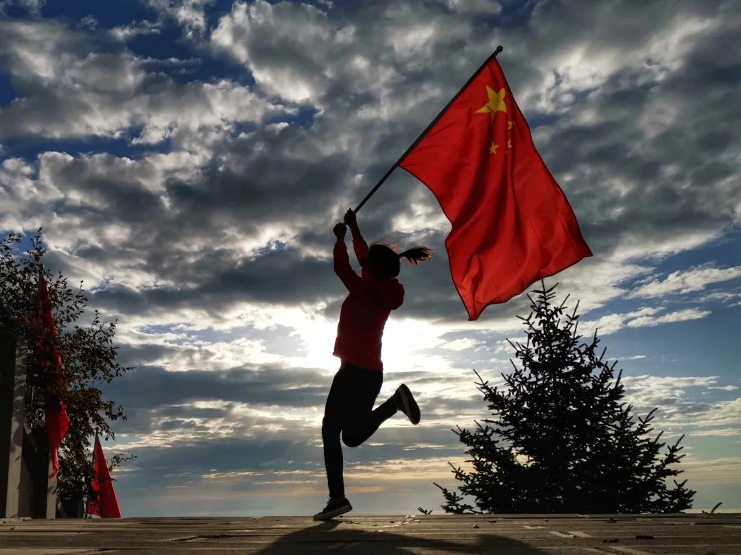 当那鲜艳的旗帜在朝阳中飘扬