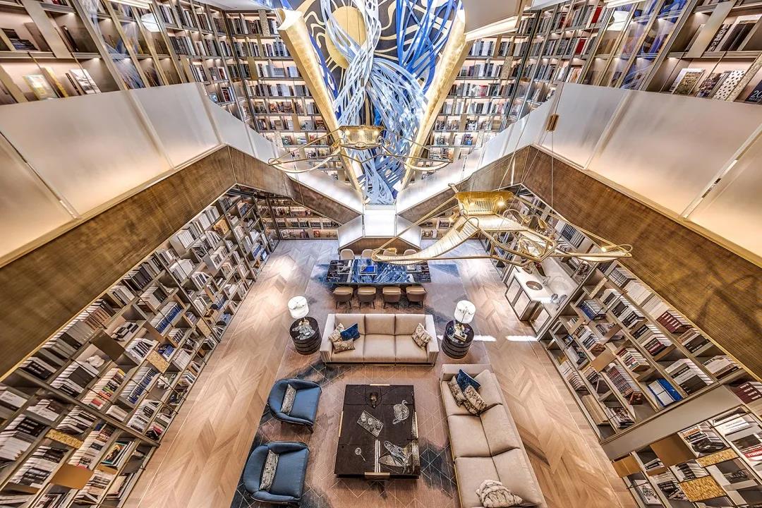 当自然光从上方的天窗射入空间之中,阳光便金灿灿渗透其中,正印证了中国古代典故之喻“书中自有黄金屋,书中自有颜如玉”。