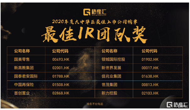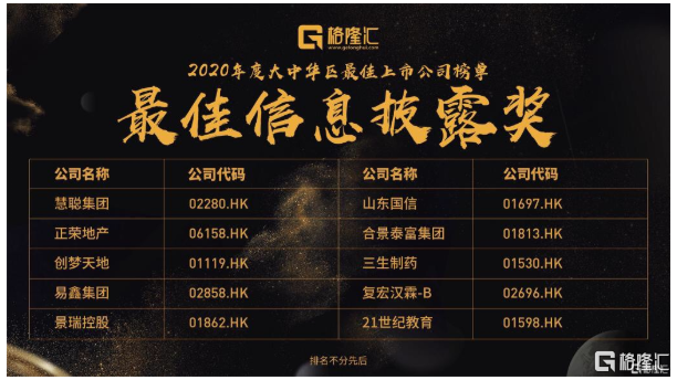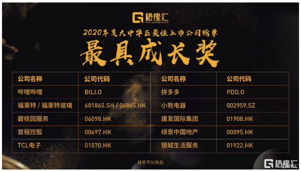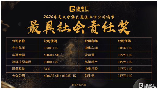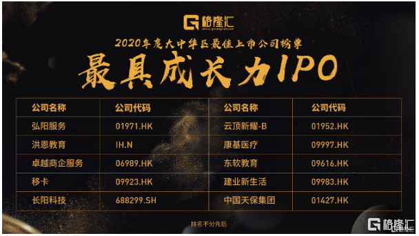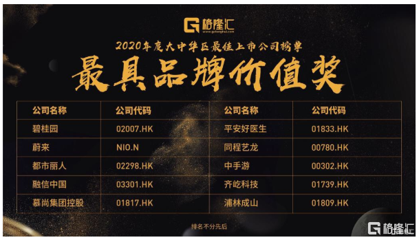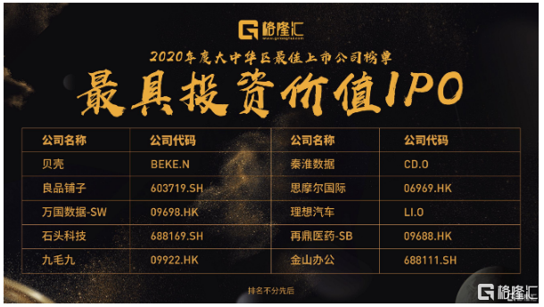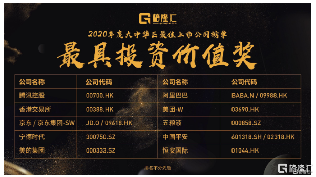 在中国最顶尖最优秀的上市公司和机构的代表的共同见证下,“2020格隆汇大中华区最佳上市公司”评选名单隆重公布。