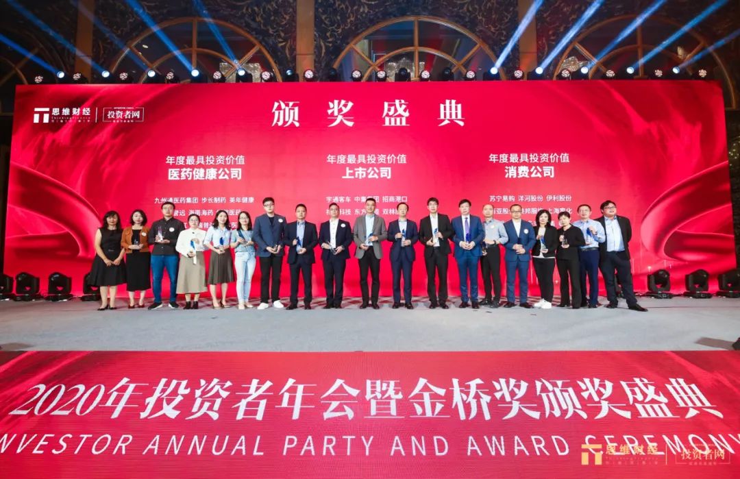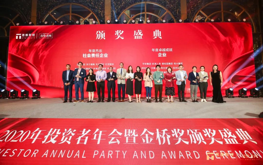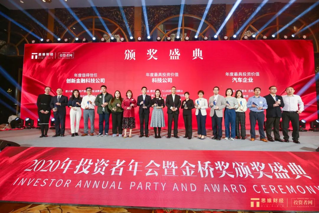 11月19日,由思维财经&投资者网独家主办的“2020年度思维财经投资者年会暨金桥奖颁奖盛典”在上海完美收官,逾百家企业载誉而归。