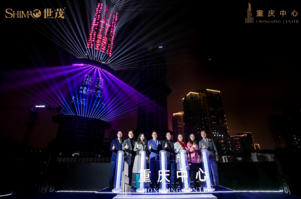 重庆中心梦幻灯光闪耀夜空。