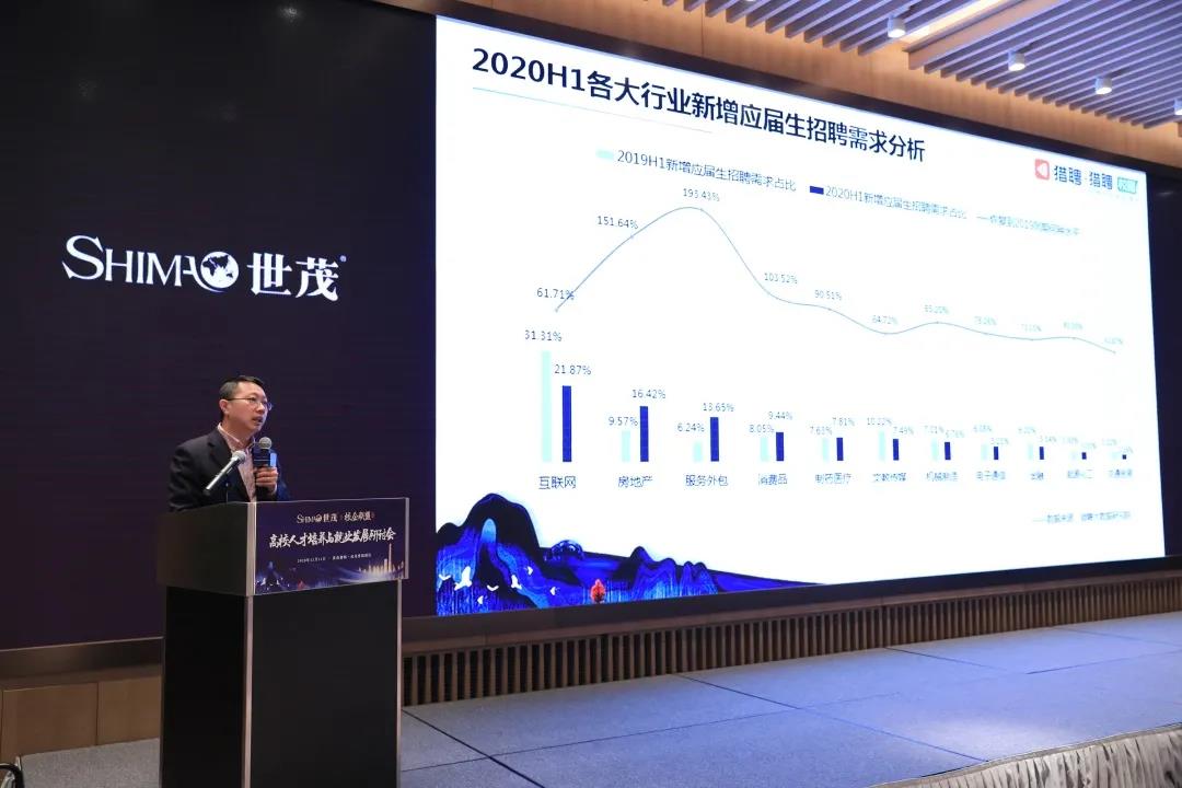 本届研讨会还特别邀请到了猎聘校园CEO温志远先生,就2020年秋招及房地产行业秋招趋势进行了特别分享。通过对于行业调研数据的专业分析,温志远分享了秋招形式的变化以及房地产行业的人才需求趋势,并对新型校企合作模式及成功案例进行了介绍。