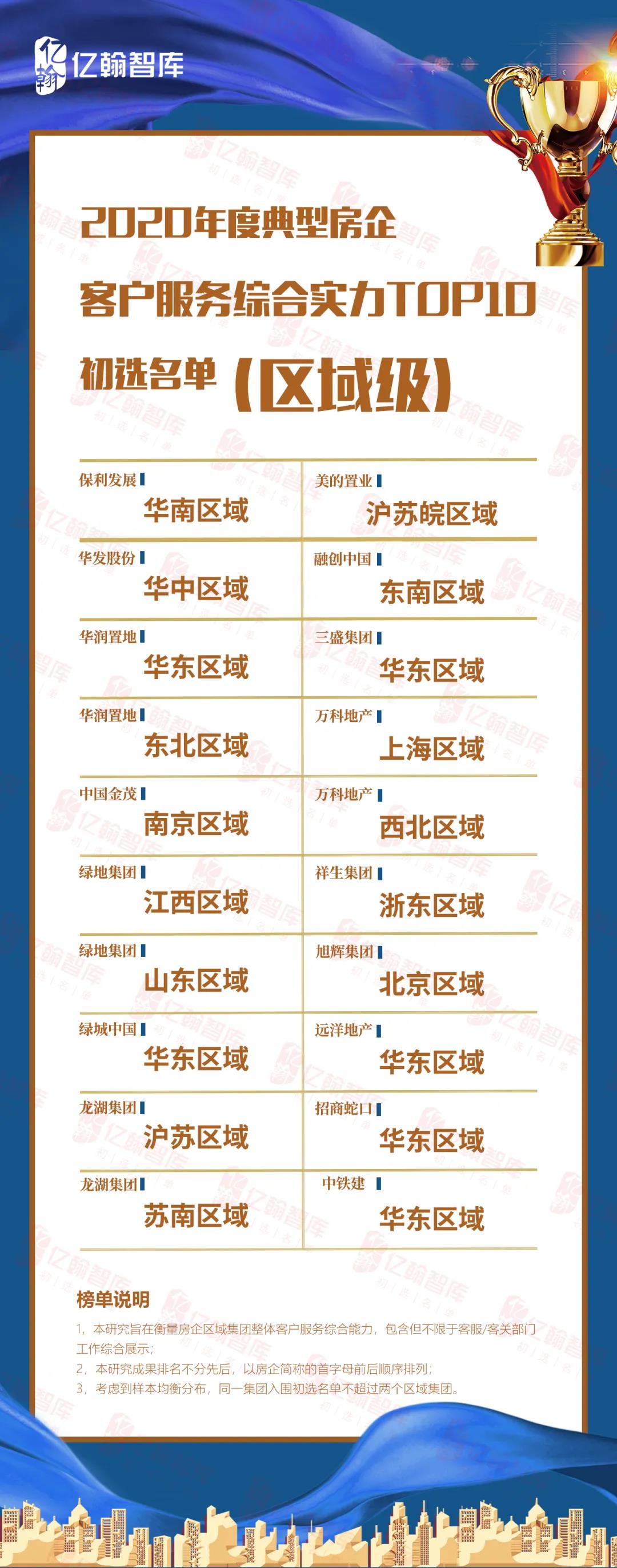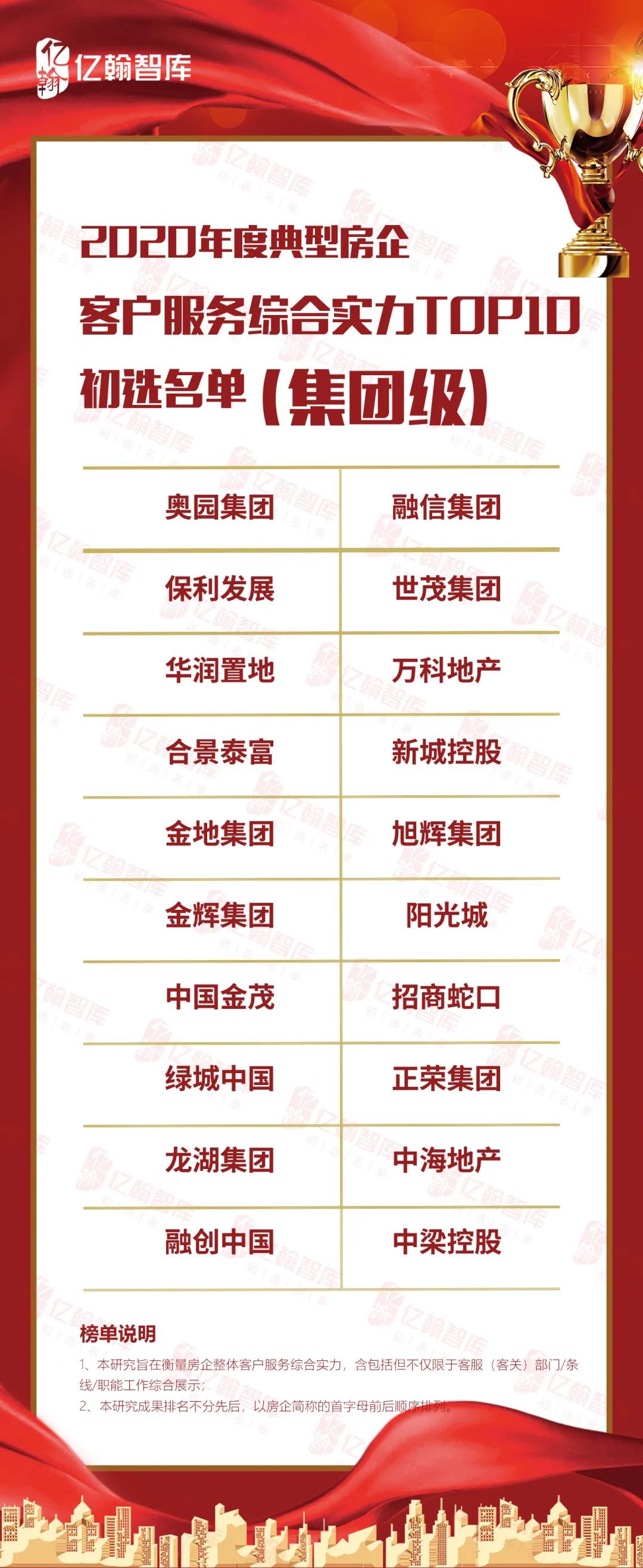 经过为期一个半月的紧密工作,由亿翰智库房企客服研究中心发起的“2020年度中国房企客服‘双十佳’” 专项研究已经完成了第一轮的初评工作,筛选得出初步结果。