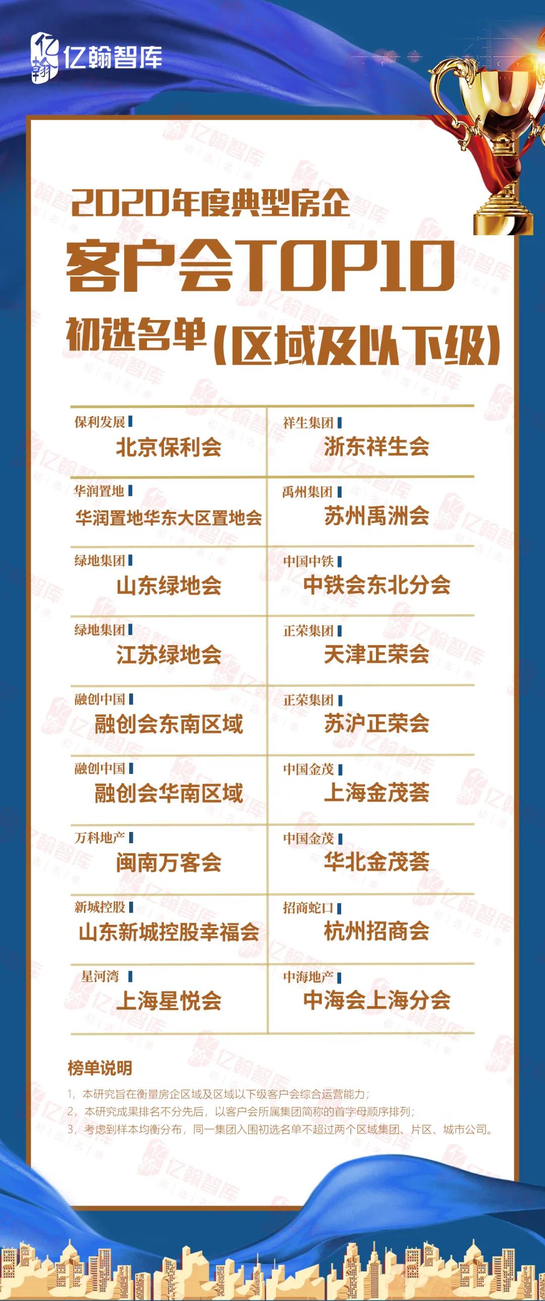 本次评选活动从企业、服务、口碑三方面入手,根据网络公开资料数据结合亿翰智库数据库进行相关工作的开展,从而保证了评选的公平公正。从初选名单的入围房企和客户会来看,呈现出以下几个特征: