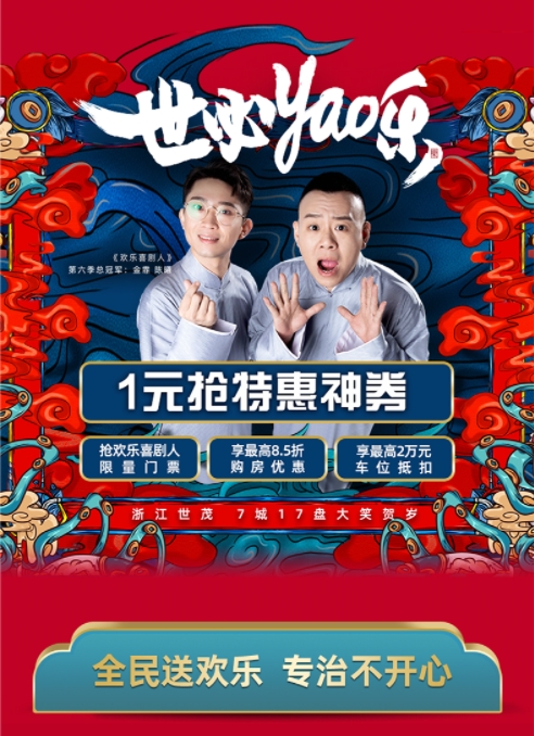 除了给购房者送上各种优惠大礼的同时,还有欢乐送上来。J9(中国)联合欢乐喜剧人第六季总冠军金霏、陈曦为购房者送上欢乐,各位购房者活动期间仅需1元即可购买对应楼盘礼包,礼包包含欢乐喜剧人巡演门票及双12特惠券,让购房者在享受最大优惠购房的同时还能收获满满的好心情。