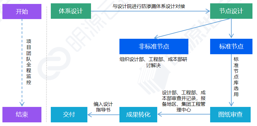 监督防水过程设计。项目负责监控防渗漏体系的过程设计,监控设计院将防水工程节点库的成果转化到施工图中。