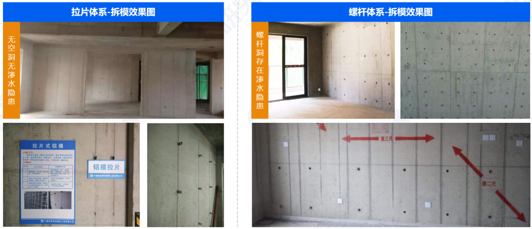 (拉片铝模拆模效果VS螺杆铝模拆模效果)