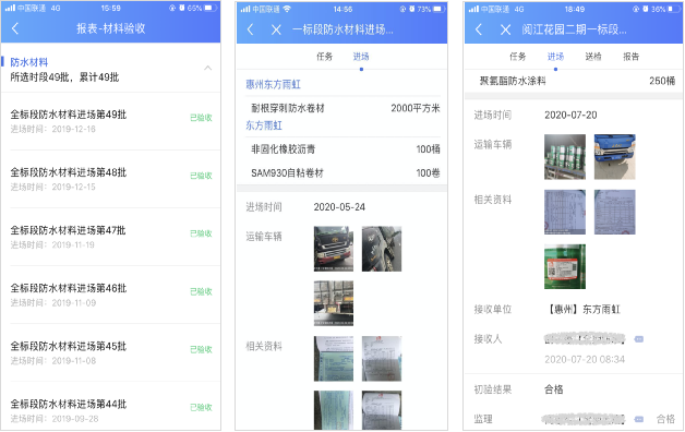 如保利,使用智慧工程APP,进场材料验收线上化,让现场每一批材料都全程留痕、过程在线、有据可查,极大的降低了材料的问题风险。