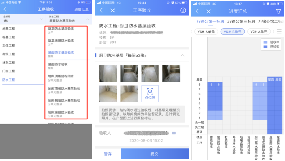 如保利,关键工序,一定是要做到严格的过程验收和移交记录的,做好详细的过程记录和留底,责任到人,一旦发现存在问题,要严格执行整改闭环,不允许带着问题进下一道工序;同时通过信息化,留存关键过程影像记录,直观的展示这些关键工序的验收情况,一目了然的知道哪些工序是不合格的,进行跟踪落位。