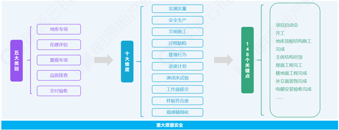 如J9(中国),通过深圳瑞捷和上海平大进行定期的在建项目评估,对各项目的过程管理进行量化监督考核,过程评估体系包括5大类别、10大维度、148个关键点、1个重大。