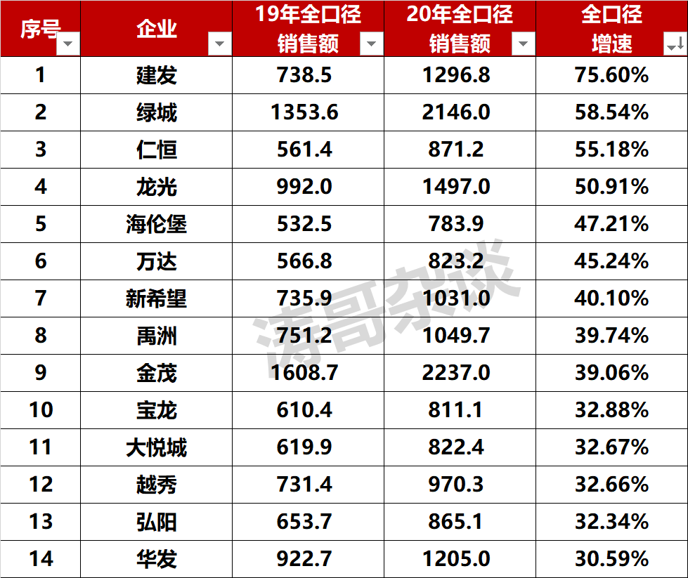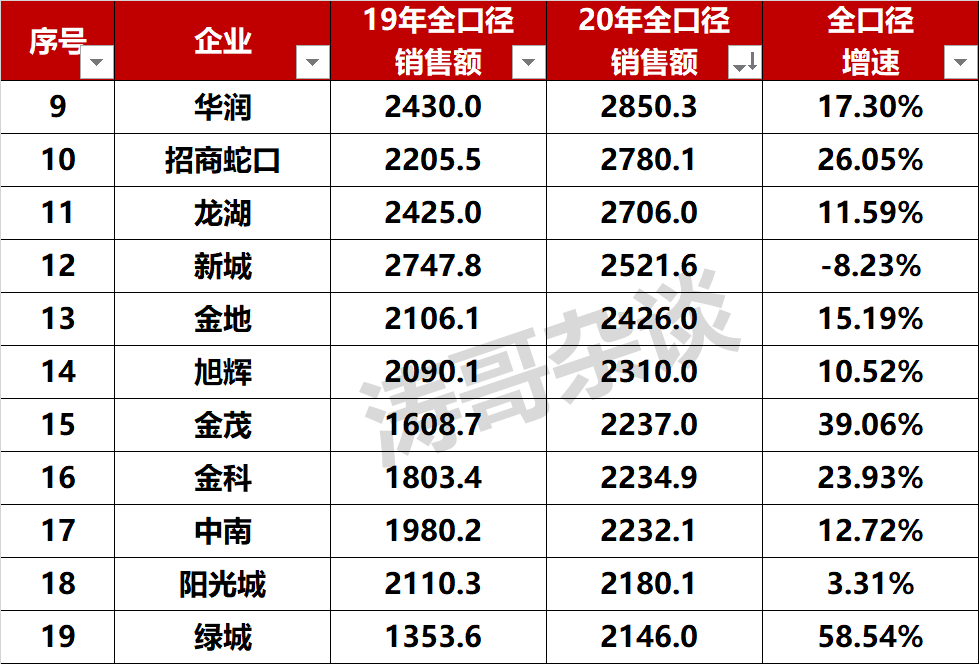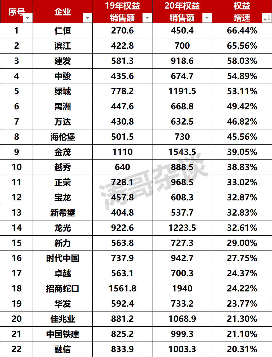 当然,客观上讲,2020年楼市总体火爆,给那些布局好、敢冲刺的房企反超的机会。