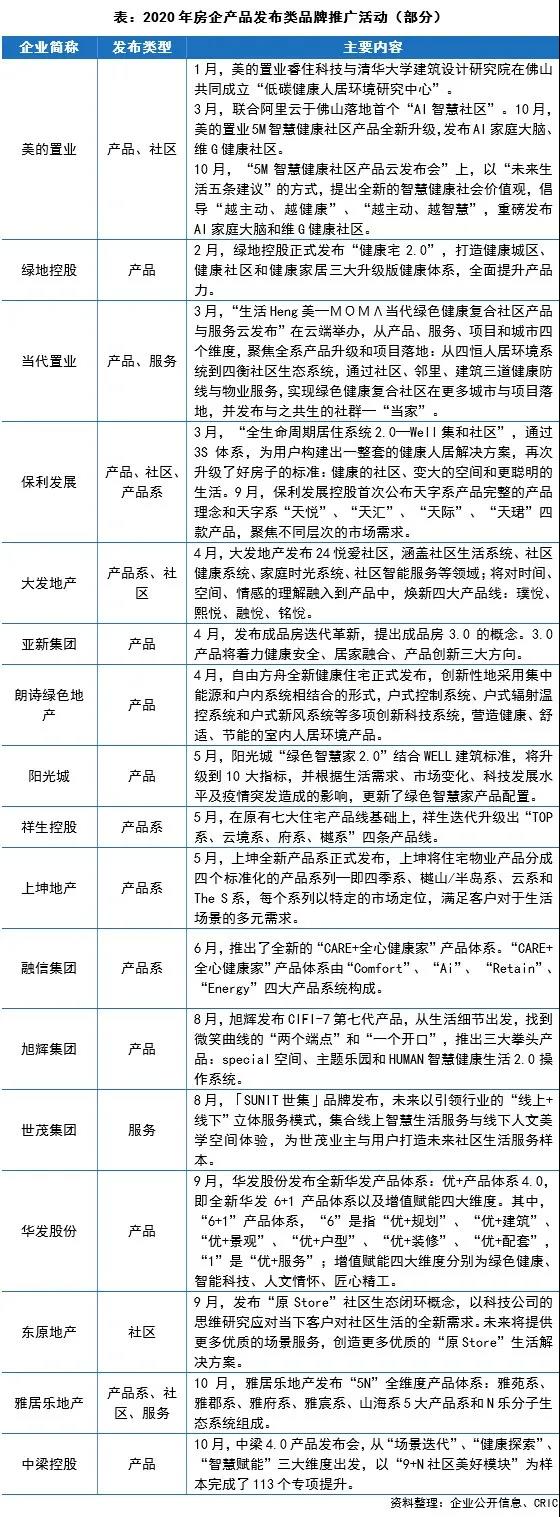 相较于往年,今年房企产品发布会在数量上明显增加,有超过30家规模房企举行了产品发布会。近年来为满足“人民对美好生活的向往”的核心诉求,在需求分层、地域化特征明显态势下,越来越多的房企积极调整发展战略,聚焦产品和产品系迭代创新,强化自身产品力打造,为未来可持续发展、规模扩张夯实基础。如今年8月,旭辉集团发布CIFI-7第七代产品,基于对生活细节缜密思考,推出special空间、主题乐园和HUMAN智慧健康生活2.0操作系统三大拳头产品。2018-2020三年里,从CIFI-5到CIFI-6再到CIFI-7,旭辉产品迭代创新之路步履不停。