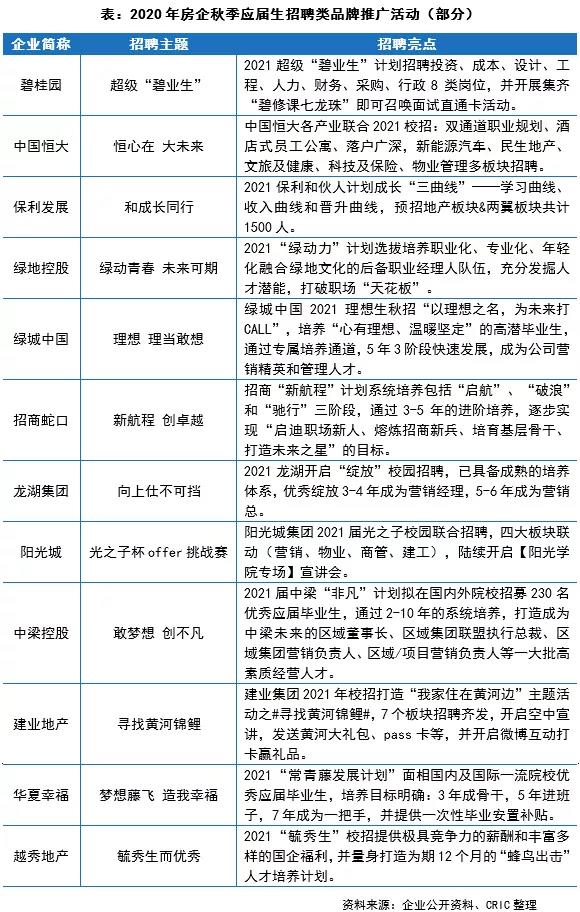 在行业集中度提升的当下,“人才”作为在发展中举足轻重的元素,愈来愈受到房企的重视。今年9月开始众多房企加紧步伐,紧锣密鼓开始了秋招工作,在行业人才选拔中铆足了劲,可以看到与人力相关的软实力建设已经占据了重要的地位。