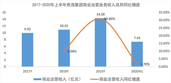 2019年公司商业运营收入14.28亿元,同比增长30.89%;2020年上半年公司商业业务营收在减免租户逾8000万租金的情况下实现了1.7%的同比增长。