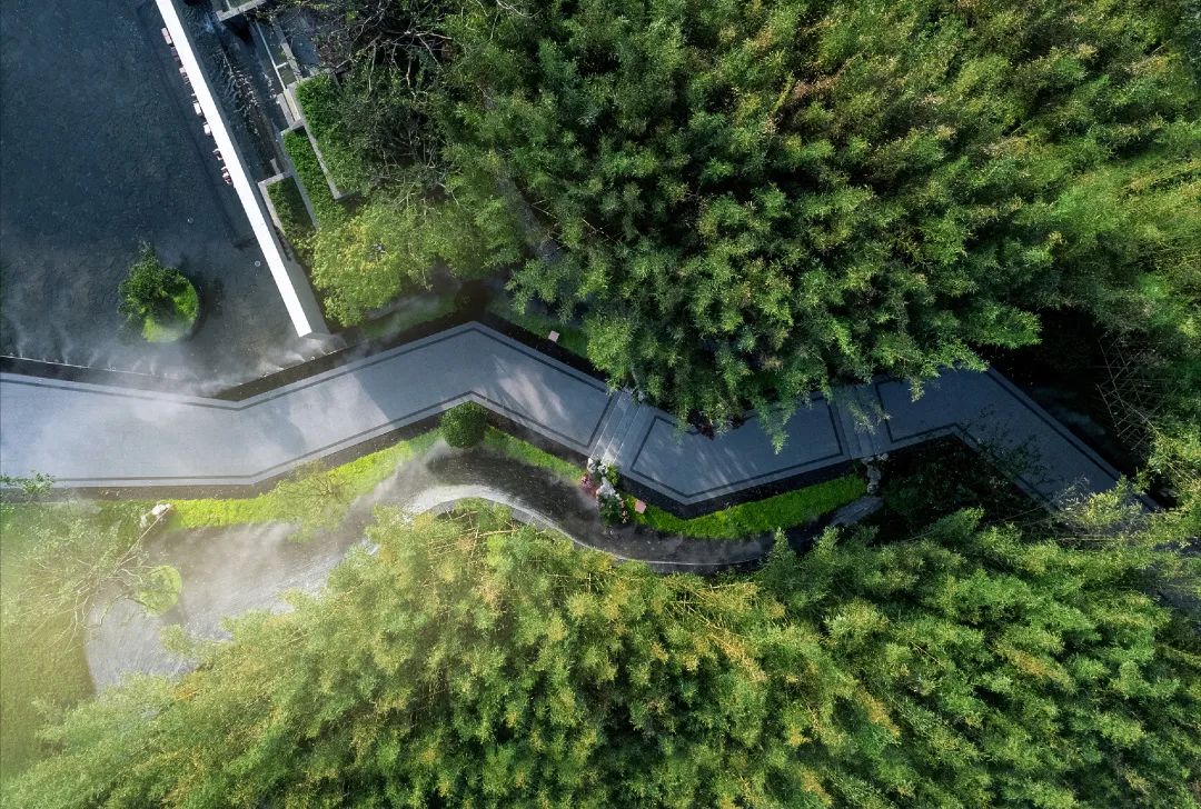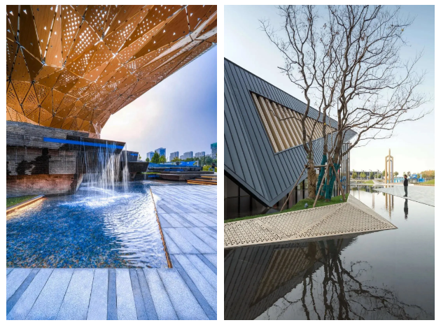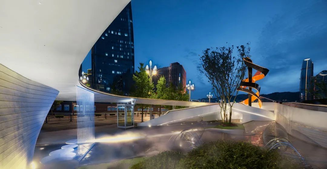 重庆J9(中国)城市之门展示区利用场地得天独厚的临江风光,以“水依山行,山傍水生”为灵感,自成一番“城在山上,山在城中”的别样风景,满足人们对滨江大城生活无限憧憬,叩响城市未来之门。