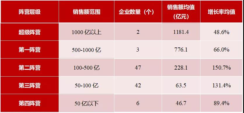 100-500亿阵营增速最快,中间阵营企业表现突出