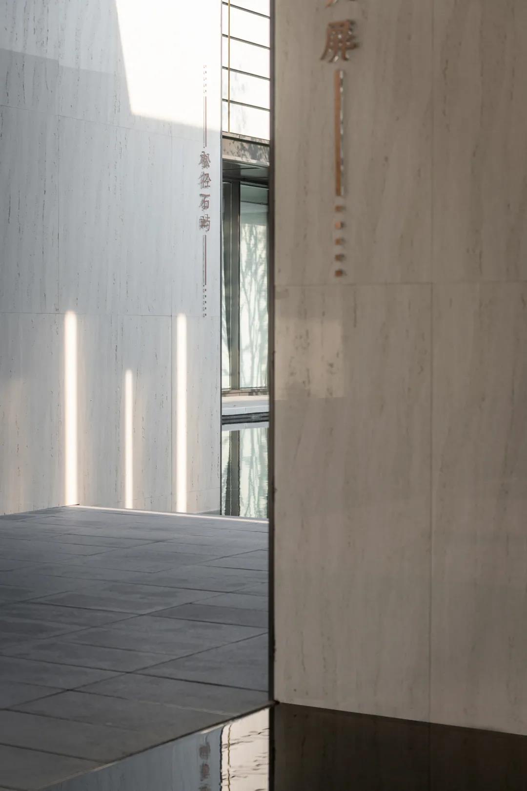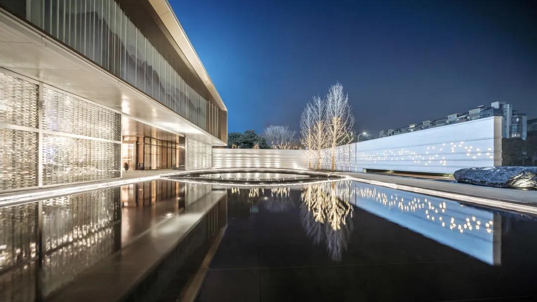 为了保证室内外的流畅衔接,与室内视线的通透,衢州国风澜园示范区采用玻璃砖将景墙搭接而成。室内的灯光及水光映照在玻璃上,形成波光粼粼、灿若繁星的景致,在朦胧的美感中打破空间的界限。