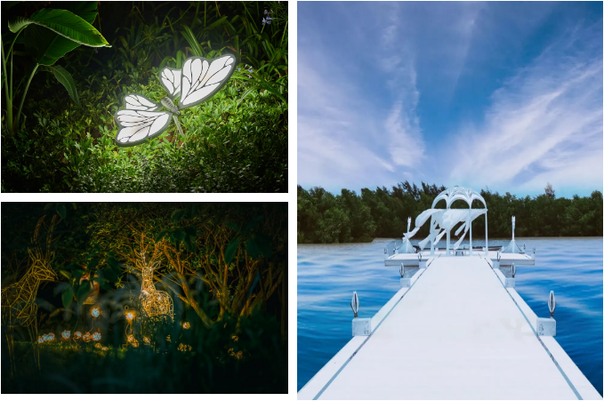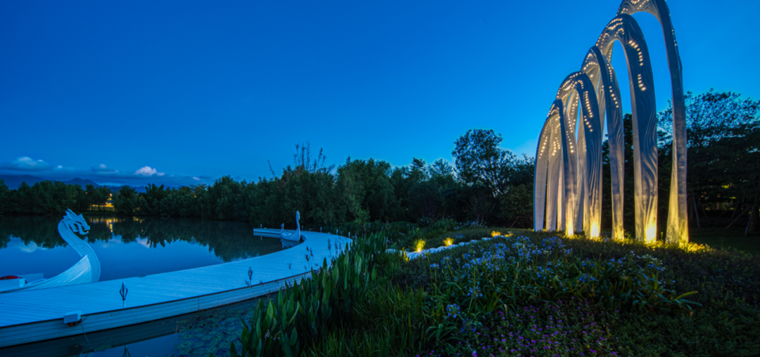 江门J9(中国)碧海银湖景观营造,以“梦幻海上”为设计理念,场景中多处创新采用未来感十足的3D打印新技术,将自然元素化成不同形态,与项目整体的自然秘境相互衬托融合。若身临其境,更能感受到强烈的视觉冲击与梦幻体验。