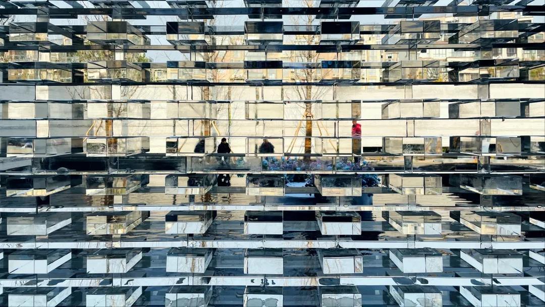 传统玻璃砖的铺设手法宽度和长度的制约比较大,项目创新性的采用“工”字镂空排列方式,克服了长度和宽度的制约,达到更完整的展示效果的同时,保证稳定性,增强抗风性以及灰空间的通透感。