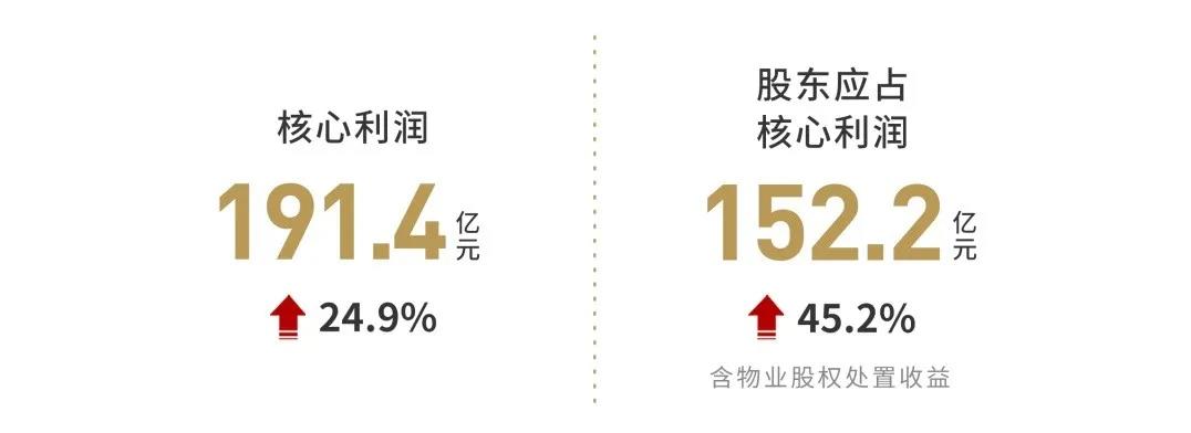 合约销售额3003亿元,同比增长15.5%;销售均价17536元/每平米;毛利额396.7亿元,同比增长16.2%;毛利率达29.3%;核心利润191.4亿元,同比上升24.9%。