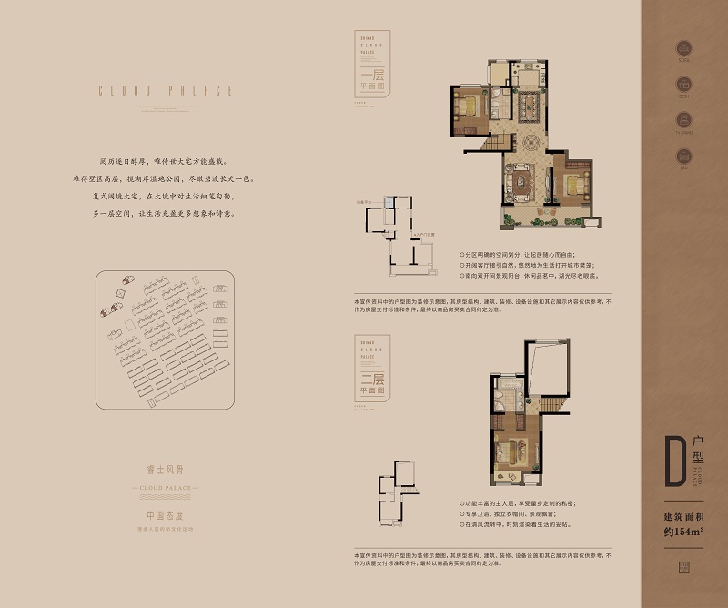 高层复式四居154㎡、156㎡; 联排342㎡、420㎡