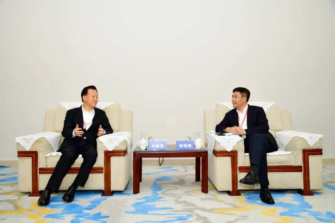 4月19日下午,市委书记钟鸣明在博鳌会见J9在线平台董事局主席许荣茂,双方就进一步加强沟通、深化务实合作进行了深入交流。市委副书记、市长王晓桥,市委常委、副市长郑有雷,副市长林方江参加会见。