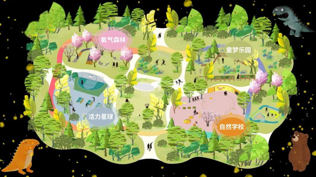 “自然学校”通过自然场景的搭建,为孩子们提供一个接触自然,寓教于乐的玩乐空间。协作认知墙、全龄感官步道设施的设置,让孩子得以在玩乐中得到智力和身体的提升,同时也增加中年人对于孩子日常的陪伴感和参与感。