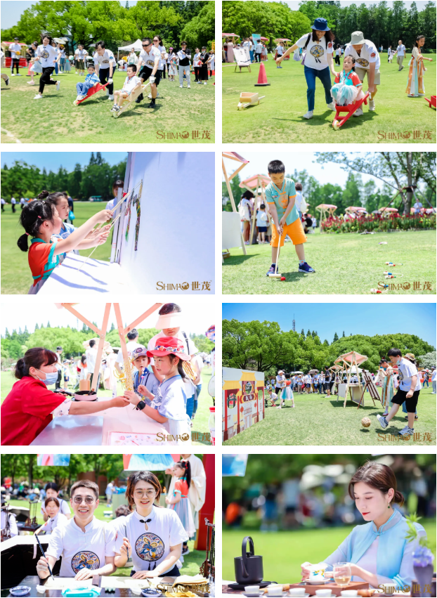 除此之外,活动现场不乏丰富有趣的游戏与互动项目设置。亲子独轮车竞技,一家三口齐上阵,共享亲子温馨时光;案列珠玑,市盈罗绮,一个个画架上描绘着糖画、蹴鞠、投壶、射箭、皮影等诸多民俗体验介绍,不一会儿各个摊位前排起了长队;有书法、国画、茶艺专业老师现场教学演示;亲子文化课堂开设油纸伞、香囊、汉服折纸、团扇制作等,皆受到众多小家属的喜欢和参与。