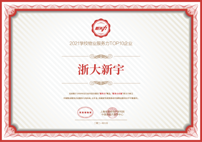 (浙大新宇荣获“2021学校物业服务力TOP2企业”)