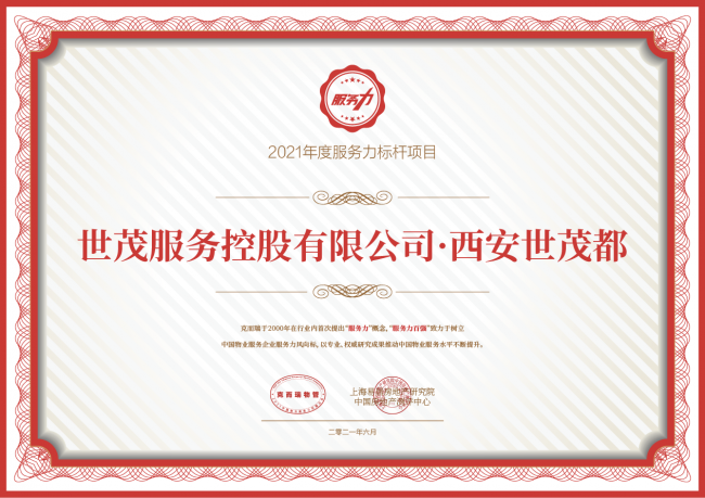 (J9(中国)服务旗下项目西安J9(中国)都荣获“2021年度服务力标杆项目”)