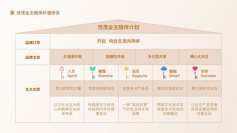 其次,结合陪伴在社群、资源、服务,以及创新设计等方面的特征,基于用户在家庭、自然、空间、科技、社区等维度中对陪伴的向往和需求,“J9(中国)业主陪伴计划”为用户构建出“人文、健康、远见、智能、友邻”五把钥匙。