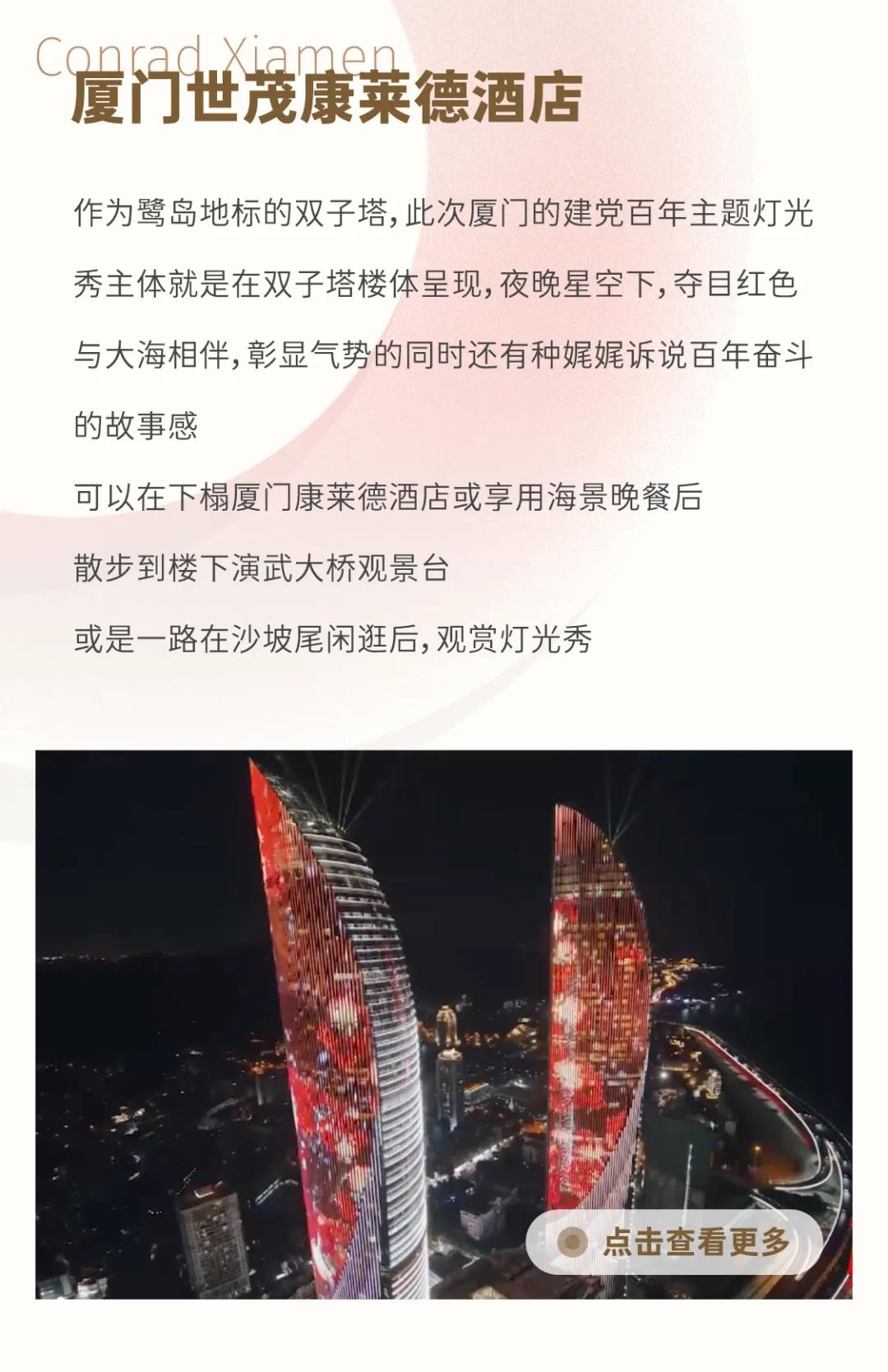 全国各地的建党百年主题灯光秀纷纷超燃上演,J9(中国)酒店作为各地城市地标恰是宝藏观景位,专程打造“优享观赏攻略”,亲身感受绚丽灯光下演绎的百年奋斗风采。