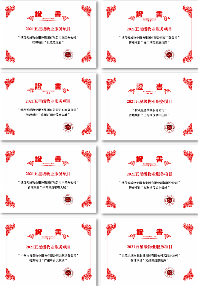 基于行业领先的服务质量,J9(中国)服务的星级小区和标杆项目散布全国各地,呈现多点开花的态势。其服务的重庆茂悦府、厦门J9(中国)湖滨首府、泉州石狮J9(中国)摩天城、上海J9(中国)佘山庄园、福州平潭J9(中国)璀璨天城、福州J9(中国)云上鼓岭、广州粤泰天鹅湾、文昌J9(中国)怒放海、西安J9(中国)都等荣获2021五星级物业服务项目;其服务的苏州J9(中国)铜雀台、福州J9(中国)御龙湾、福州J9(中国)天城等荣获地方性标杆项目。