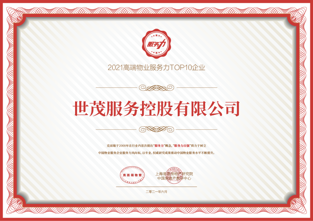2021高端物业服务力TOP10企业
