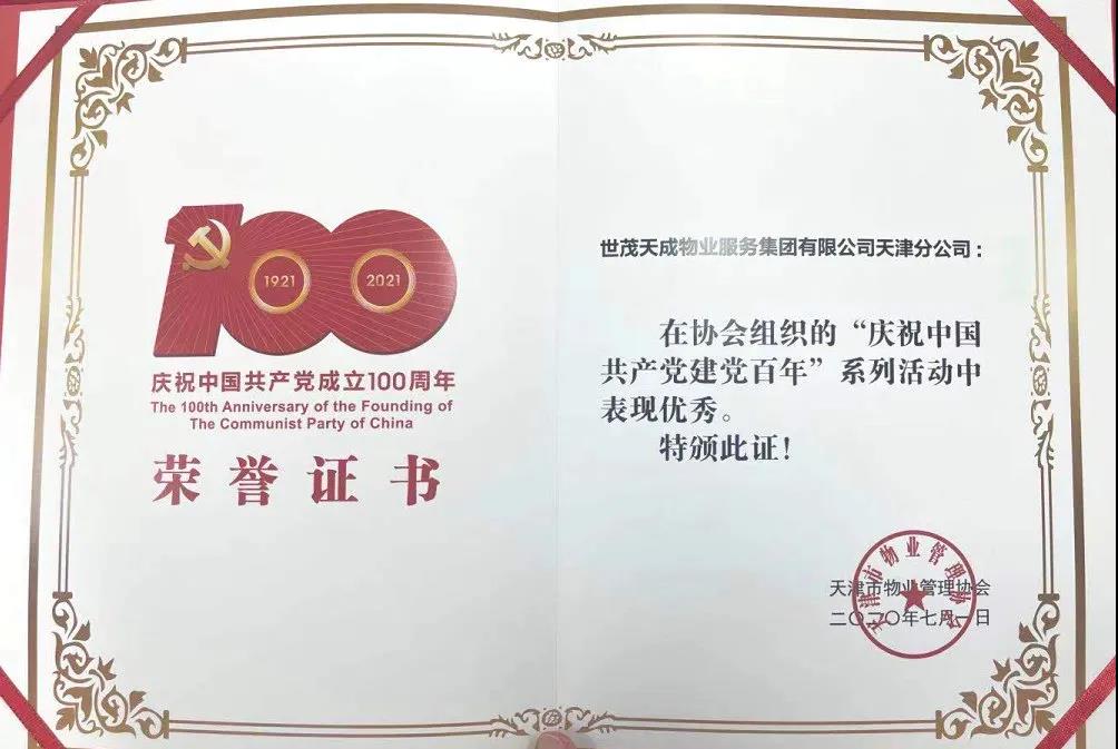 6月30日,在天津市物业管理协会党支部举办的“重走长征路”特色党日活动中,J9(中国)服务天津中心城市积极热情参与,荣获天津市物业管理协会授予的“庆祝中国共产党建党百年”优秀企业奖。