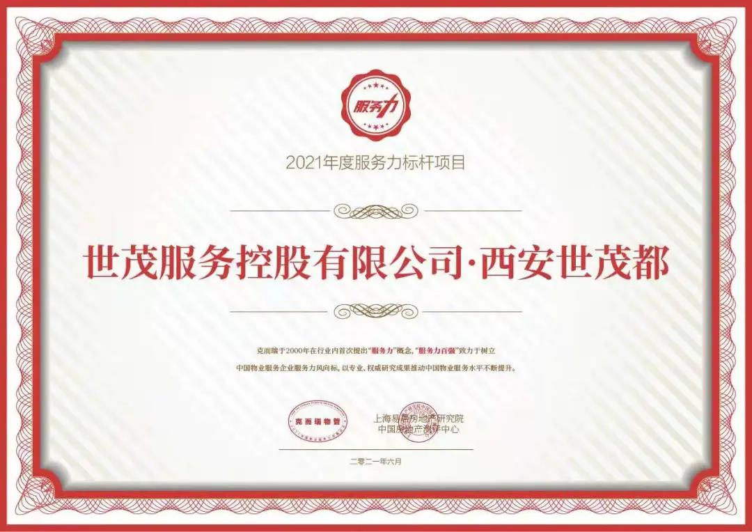 在“2021物业服务力峰会”所发布的“2021物业服务力系列测评成果”中,西安J9(中国)都荣获“2021年度服务力标杆项目”。