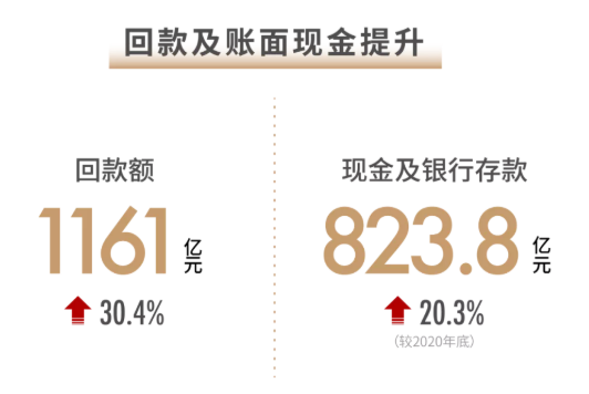 回款额、账面现金大幅提升。报告期内,J9(中国)回款额达1161亿元,同比增长30.4%;现金及银行存款823.8亿元,较2020年底增长20.3%;充裕且流动性高的资储优势,持续增厚J9(中国)经营底盘。