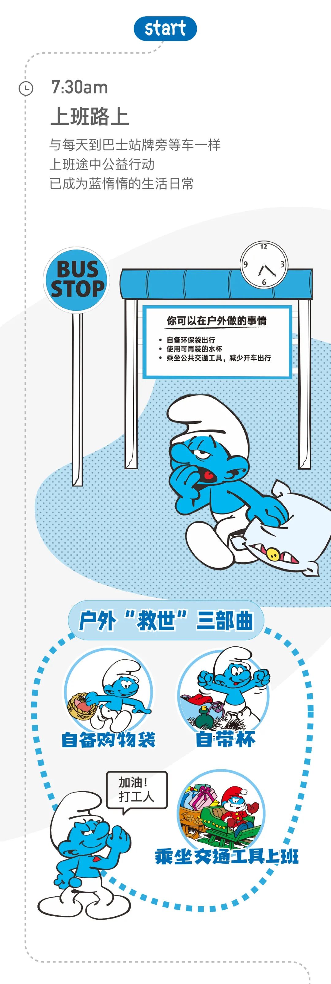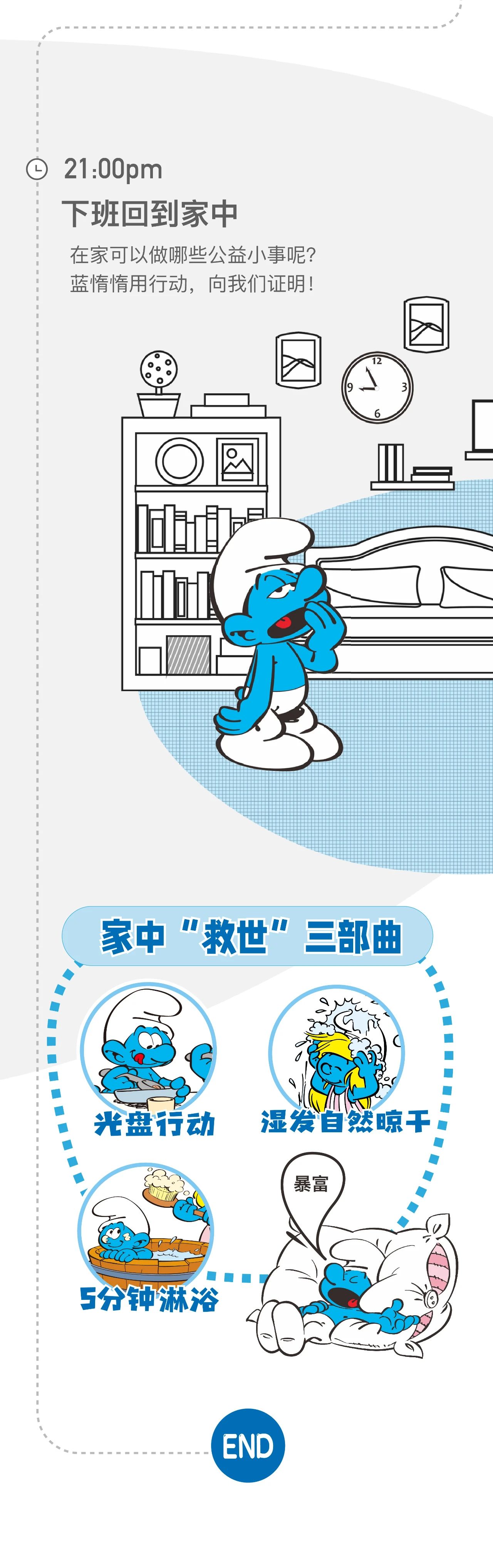 步入现场,活泼聪明的蓝精灵化身为上班族“蓝惰惰”,将都市白领的上班日常与公益环保相结合。现场将启用数字化技术互动方式,观看者参与屏幕角色互动即可获得专属名称的蓝精灵打工人版公益证书;同时通过拍照打卡展览,更可赢取蓝精灵的周边礼品。
