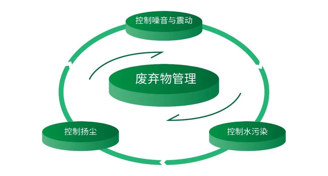 针对施工过程中不可避免产生的废弃物,在扬尘、水污染、噪声与振动维度,项目利用智能化手段进行重点处理,使用如扬尘噪音环保在线检测仪、智慧云平台等,最大化减少工地对环境的影响。