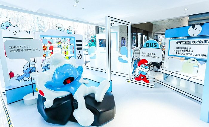 本次展览,蓝精灵来到北京J9(中国)大厦写字楼,以懒懒的蓝惰惰的“救世”日常为故事主线,与工作繁忙的上班族进行对话。展览打造了“车站”“办公室”“会议室”等多个上班族的熟悉场景,通过探秘蓝精灵公益大使的上班日常,增强白领们“公益大使”身份的代入感。