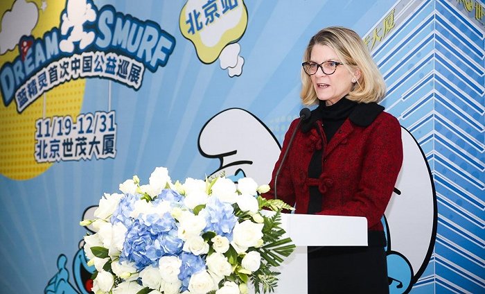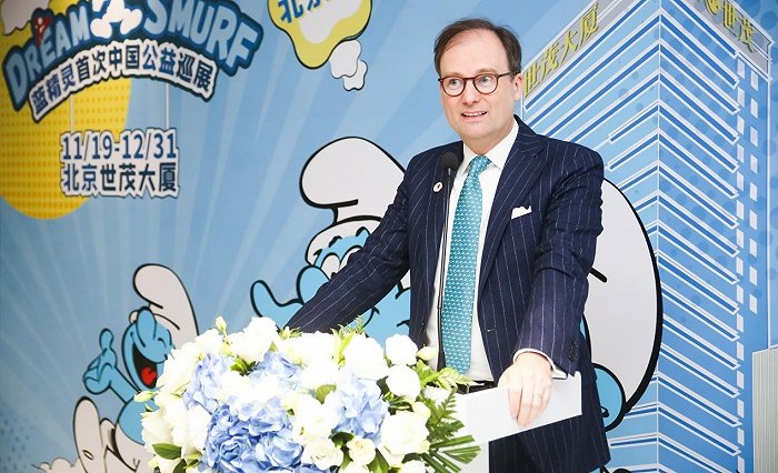比利时驻华大使Jan HOOGMARTENS出席启幕活动并表示:“蓝精灵是联合国17项可持续发展目标的大使,希望大家能切身感受到蓝精灵IP的公益精神,深入了解可持续城市社群发展、可持续能源建设、海洋减塑、性别平等、可持续健康、可持续经济增长等目标。”