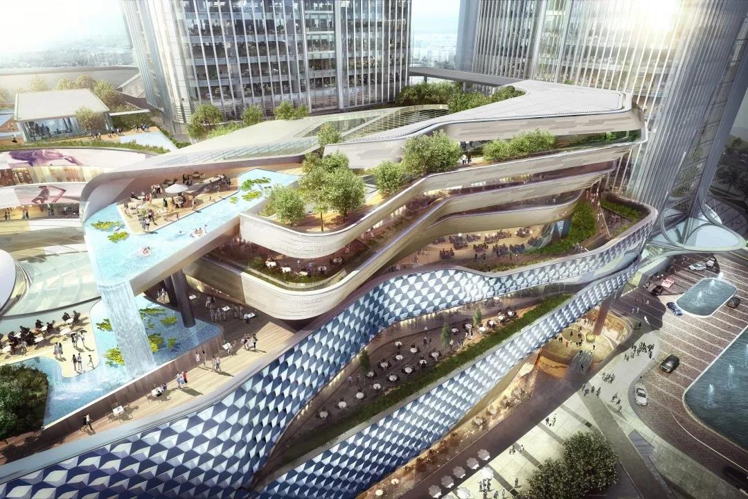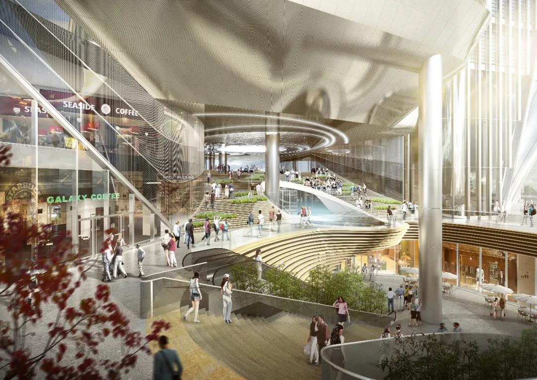 立体商业街:可呼吸的立体商业街,营造出高山流水的购物体验,将经典商业模式结合深圳的气候特征,打造半开放式的24小时社交交互空间