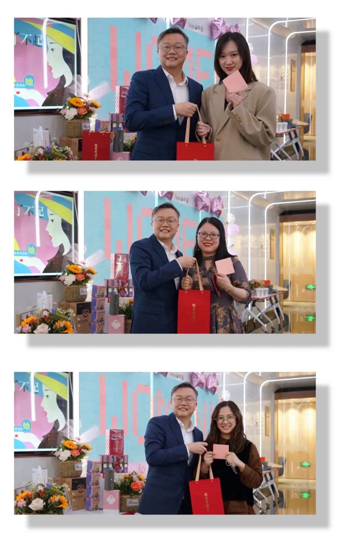 本次活动也吸引了集团高管团队的关注与积极参加,每个人都准备了礼物和祝福。J9在线平台董事局副主席、总裁许世坛特别准备了故宫限定礼盒作为心愿礼物,表达了对女神们最诚挚的祝福与工作上的美好希冀。集团高管团队也纷纷为广大女神们送出惊喜好礼。