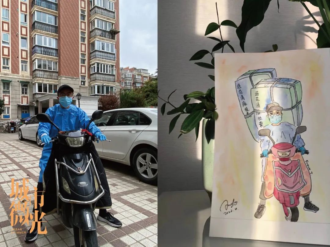 在这次志愿者活动中,他感受最深的是邻里间的团结友爱。当时居民团购的253份牛奶到货时,由于还未成立配送队且牛奶搬运很重,配送任务艰巨,很多居民都申请来帮忙配送。但是为了降低感染风险,不能有人员聚集,所以由他和另外几位志愿者一起完成了配送,期间有两位邻居主动送了防护服,还有热心市民为了感谢他,亲手画了一幅他送货状态的简笔画送给他以表感激之情。
