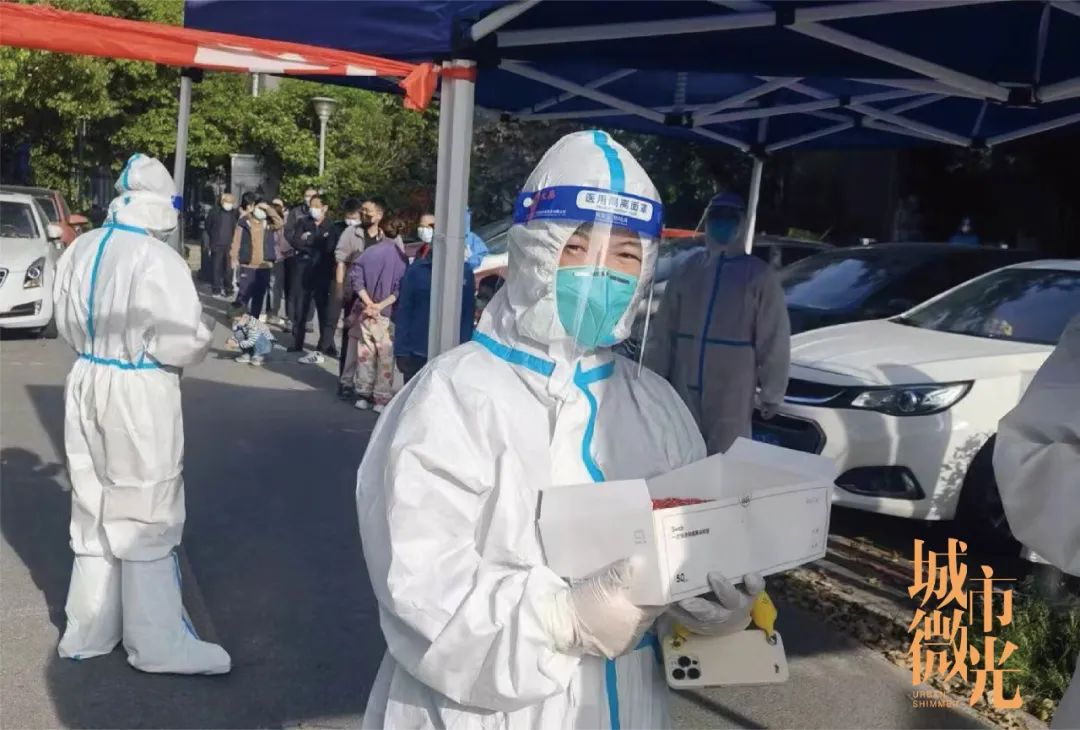 期间除了防疫物资的搬运及发放工作,在集体做核酸时,她还要负责现场秩序的维护,防止做核酸人员聚集,造城交叉感染;有些居民没有听到广播,她也会每栋楼挨户通知居民做核酸;遇到行动不方便的老人、盲人,更是主动上前搀扶,把他们送到做核酸地点。