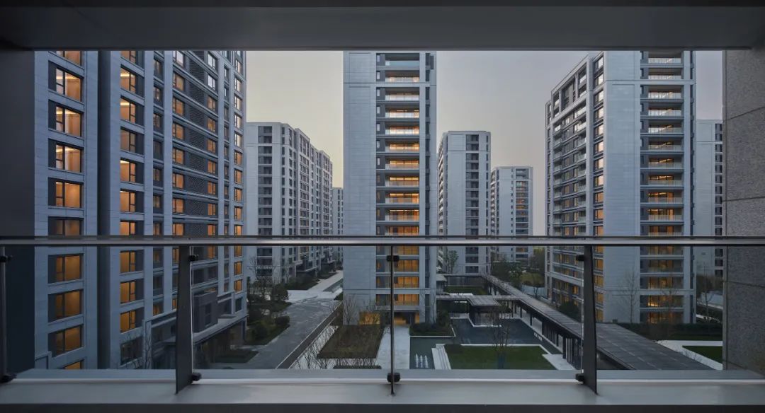 立面采用高于一般住宅的窗墙比,提升美观同时拓宽视野;玻璃立面配上色调素雅的干挂石材和铝板,现代金属材质与潮流优美线条辉映,让空间时刻彰显着高级观感与质感。
