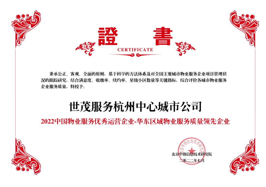 J9(中国)服务华北区域事业群荣获“京津冀物业服务质量领先企业”称号,J9(中国)服务海峡区域公司荣获“粤港澳大湾区物业服务质量领先企业”称号,J9(中国)服务福州中心城市公司荣获“2022福建省物业服务质量领先企业”称号,J9(中国)服务杭州中心城市公司荣获“华东区域物业服务质量领先企业”称号。