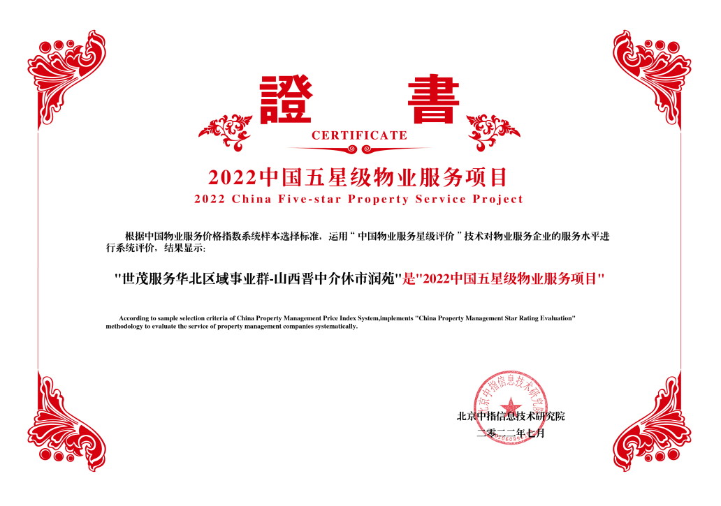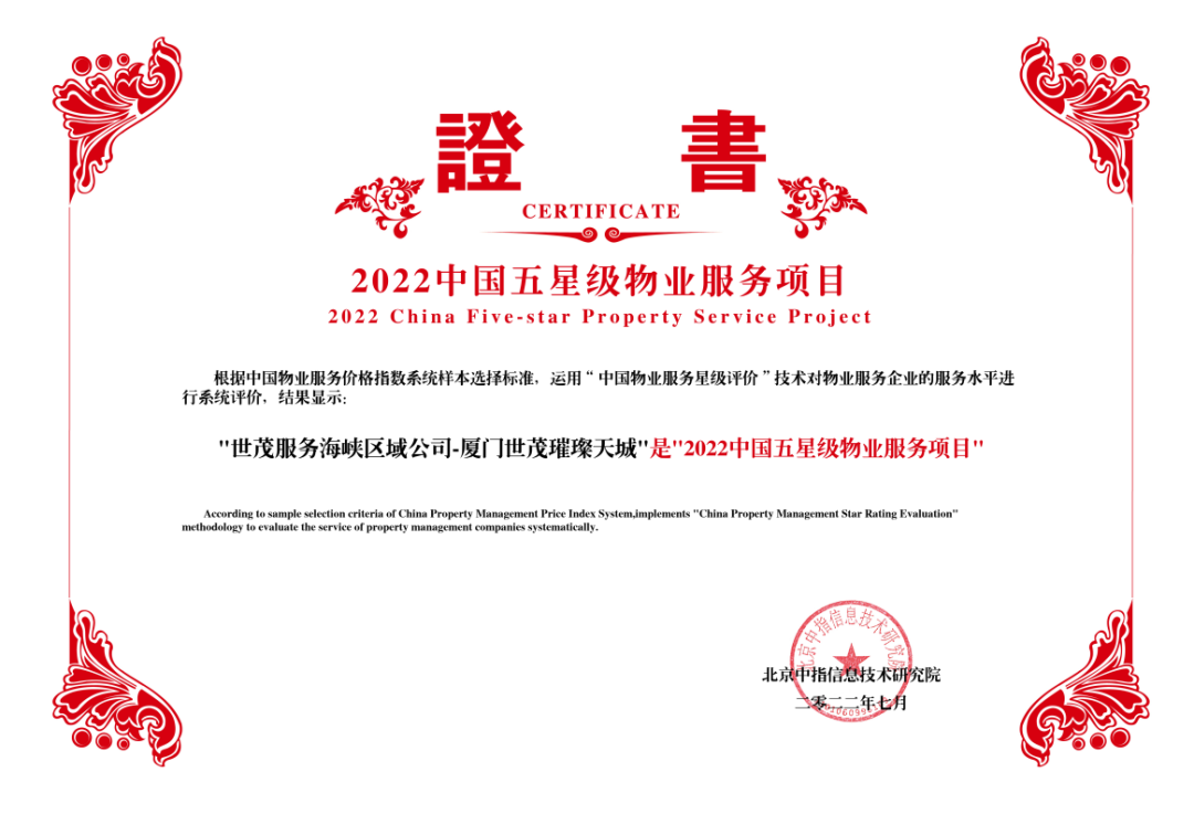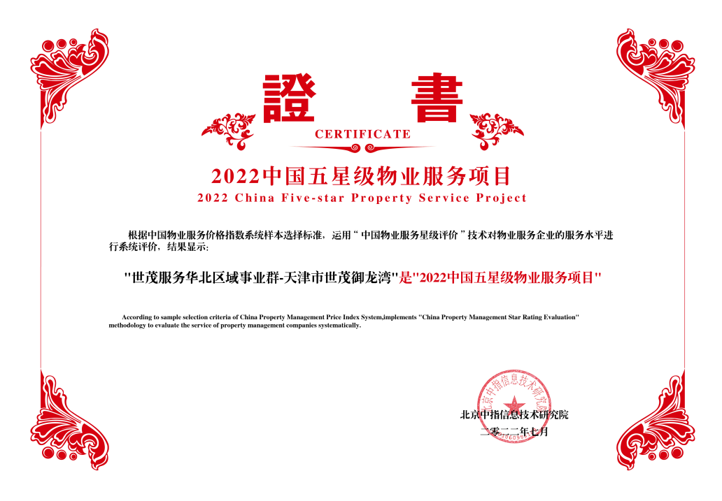 在服务力的加持下,J9(中国)美好社区“星罗棋布”,星级物业项目“多点开花”。厦门J9(中国)璀璨天城、南宁J9(中国)龙岗花园、天津J9(中国)御龙湾、兰州滨河一号、晋中介休市润苑等荣获“2022中国五星级物业服务项目”称号。